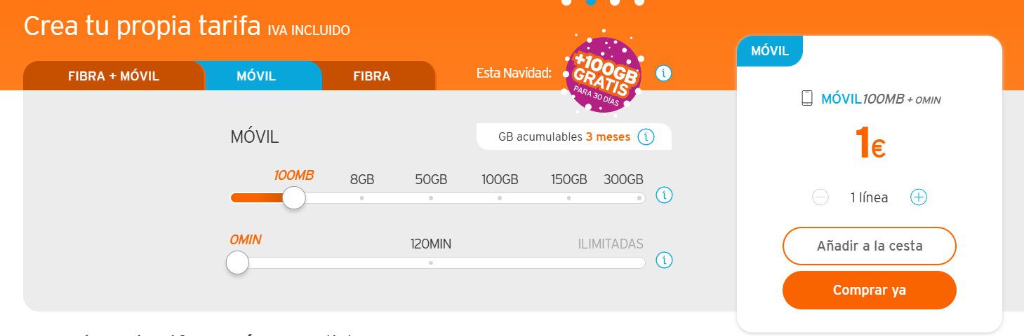 Si quieres puedes elegir una Portabilidad con una tarifa de 1€ (100MB y 0Min).